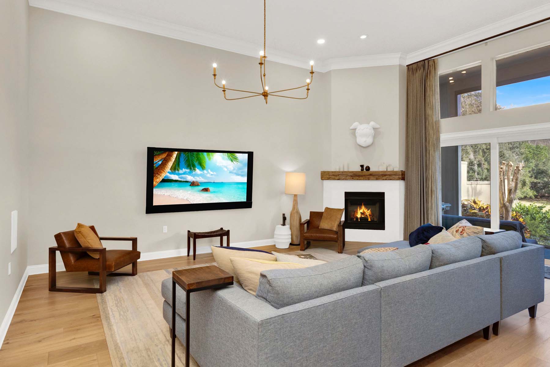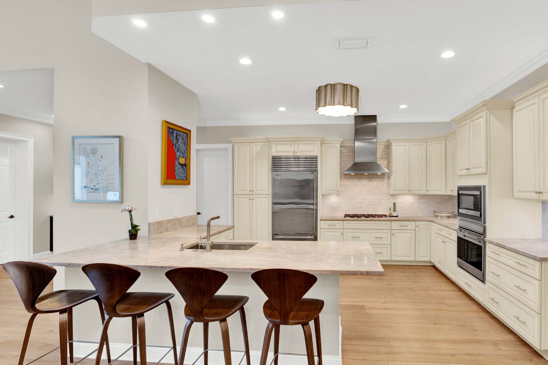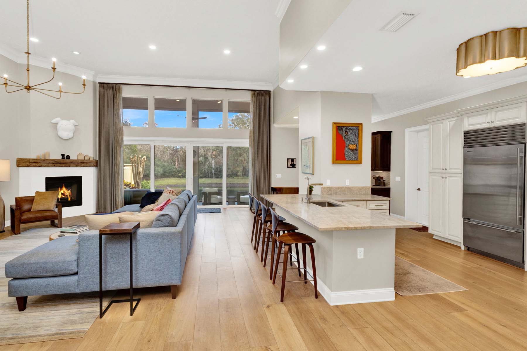 This villa-style community is unmatched in Ponte Vedra Beach, offering true single-level living, attached two-car garages, generous guest parking, and a peaceful residential atmosphere rarely found in condominium living. This particular home has undergone a complete, top-to-bottom renovation, executed to the highest standards by a highly respected interior designer. Every detail has been thoughtfully reimagined, resulting in a refined, sophisticated space that lives and feels like a private home. Hardwood flooring flows throughout, paired with elevated finishes and custom design elements. Volume ceilings and disappearing sliding glass doors with transom windows above fill the interior with abundant natural light and create a seamless indoor-outdoor connection. The open floor plan is ideal for entertaining, effortlessly extending to an outdoor living area enhanced by electric screensperfect for elegant al fresco dining. Modern conveniences include app-controlled electronics and an updated Lutron lighting system. The attached two-car garage is equally impressive with epoxy floors, an electric vehicle charger, water softener, and excellent storage. A truly turnkey offering designed for the most discerning buyer.