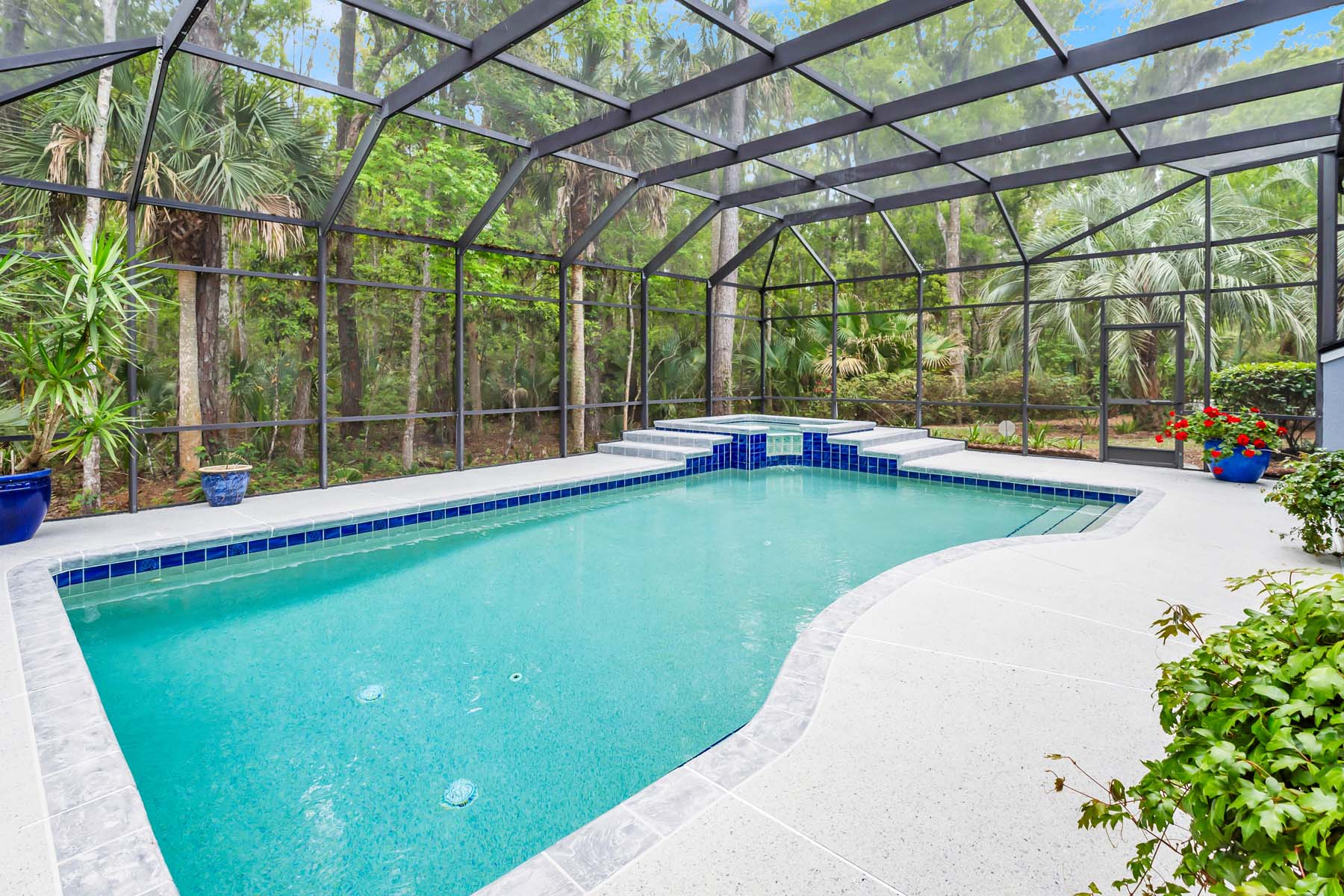 Step outside to your private backyard retreat with a heated saltwater pool and 10 person spa, pebble tech pool finish, screened enclosure, and a large fenced yard completely private from your neighbors. Additional highlights include a 20KW Generac generator, whole-house water purification and surge protection, new roof (2017), HVAC (2021), LP gas water heater (2021), surround sound, integrated speakers, epoxy garage flooring with built in cabinetry and a 2nd-floor bar/kitchenette. Truly move-in ready and exceptional in every way.
